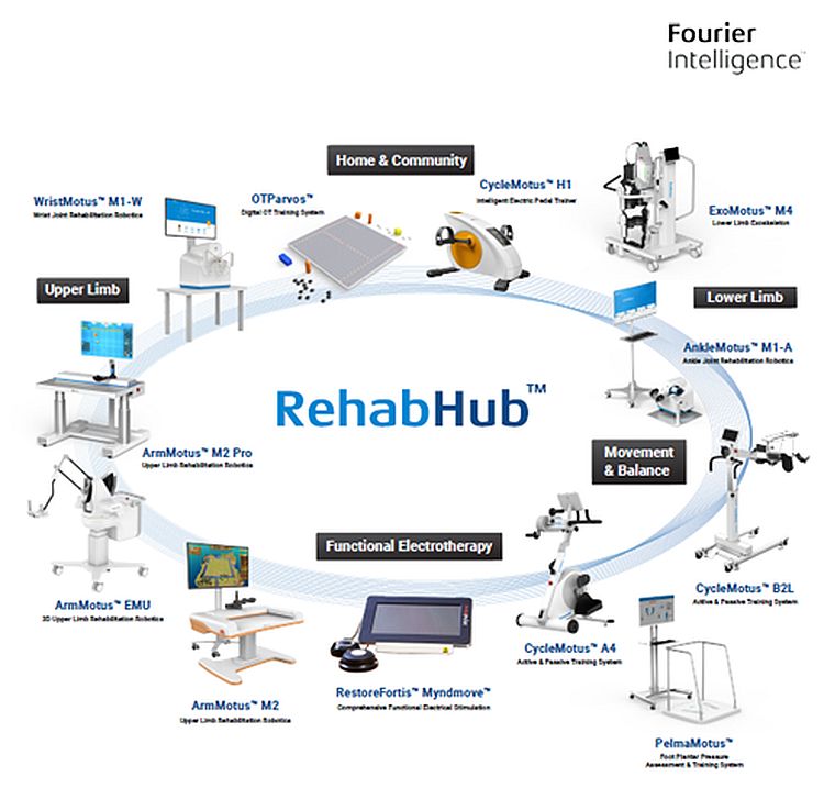 The RehabHub™ aims to create a diversified and inclusive ecosystem, enabling greater patient recovery through robotics. image copyright: Fourier Intelligence